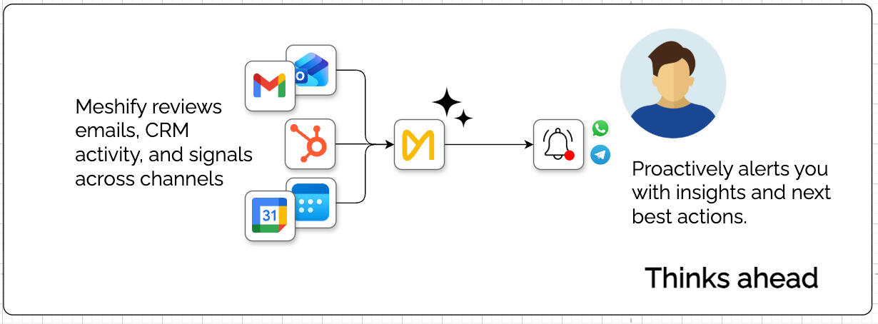 Never miss a lead → Meshify extracts opportunities hidden in emails.