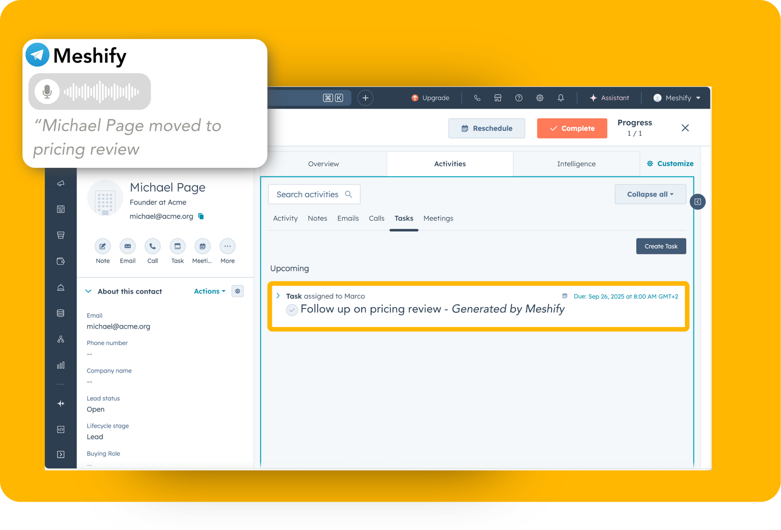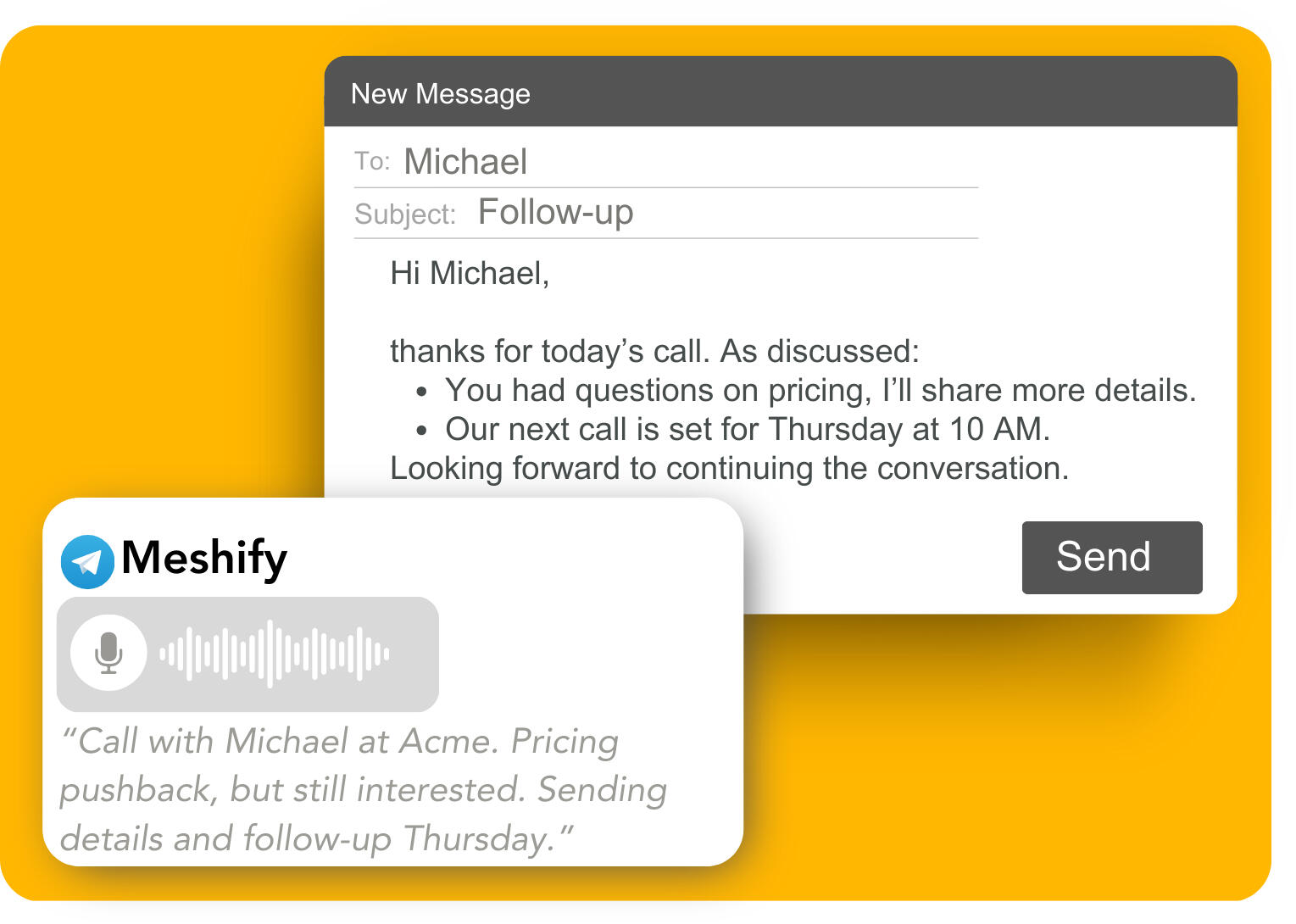 Never miss a lead → Meshify extracts opportunities hidden in emails.